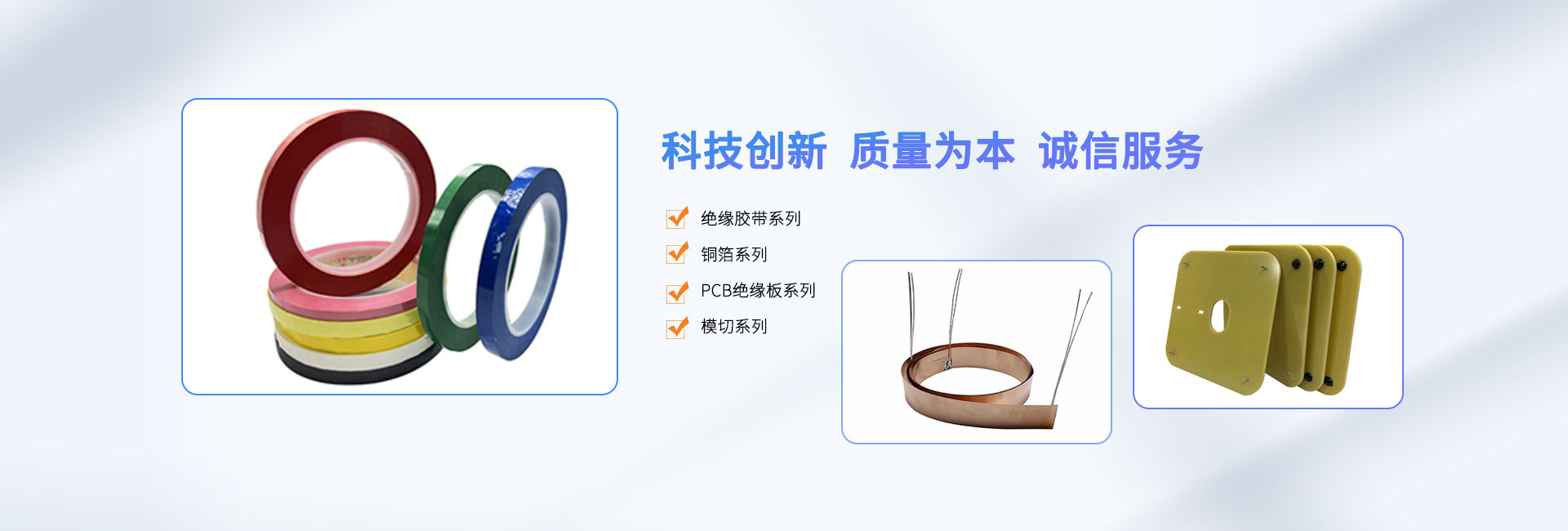 本公司專業生產聚酯瑪拉膠帶、無紡布擋墻膠帶、照相用菲林膠帶、PVC電工膠帶、銅箔膠帶、鋁箔膠帶、皺紋帶、鐵氟龍膠帶、玻璃布膠帶、雙面膠帶、聚酰亞胺膠帶、 美紋紙膠帶、諾美紙膠帶、背膠銅箔、環型變壓器用PCB絕緣板、隔片、底板、假腳、電子整流器專用絕緣紙、塊巴紙、電纜絕緣用電話紙、電纜紙等。